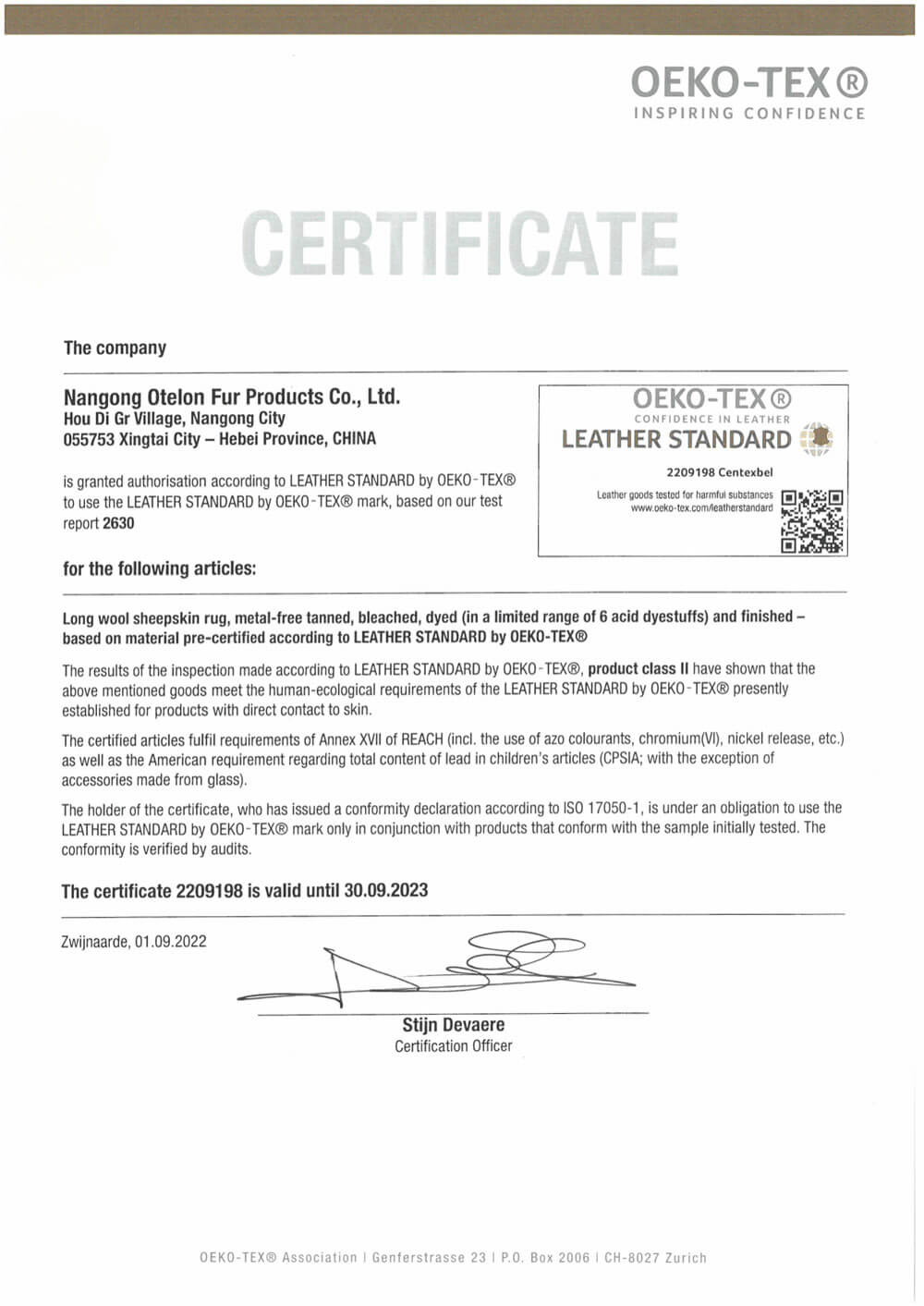 Yes. Our products are certified by SGS, OEKO-TEX, and Intertek. We also operate an eco-tanning process and a wastewater treatment system.